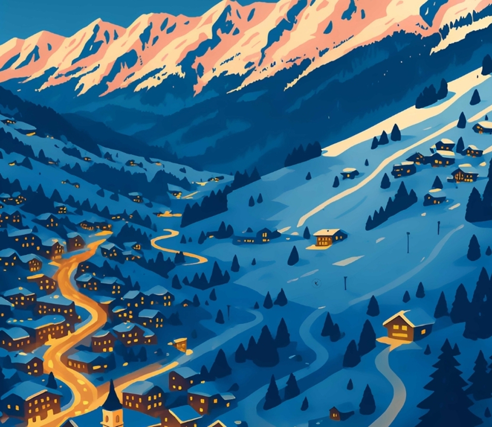 À la tombée du jour, La Clusaz s’illumine d’une douce lumière dorée. Entre chalets typiques, clochers savoyards et sommets des Aravis, le village révèle tout son charme. Un cadre chaleureux et authentique, où l’esprit de la montagne se vit pleinement.